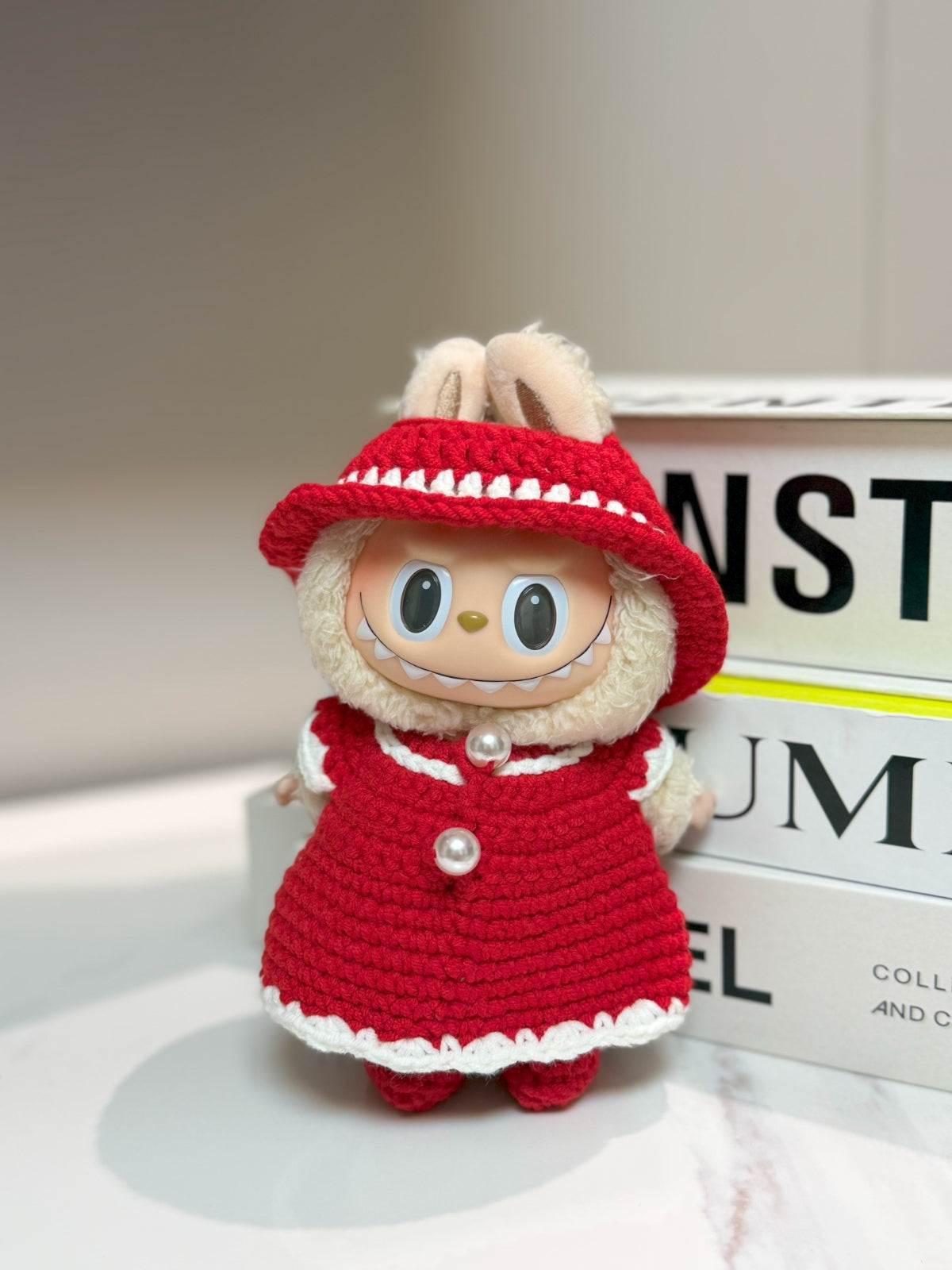 Delight in the bespoke charm of our handcrafted wool and leather costumes, designed specifically for beloved toy figures like Labubu and Chiikawa.